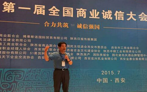 近日,首届全国商业诚信大会在陕西召开,本次大会由中国商业联合会等单位主办。会议以“合力共筑 诚信强国”为主题,中国商业联合会会长张志刚,陕西省政协副主席、省工商联主席冯月菊等领导前台就坐。博蒂斯诺国际贸易有限公司董事长雷振龙代表大会发布《西安宣言》,向全国商务领域的企业家发出倡议,号召把企业利益实现与诚信价值准则相统一,共同致力于创建依法经营、统一规范、有序竞争的优良市场环境。之后,爱国者集团董事长冯军、阿里巴巴外贸综合服务事业部总经理魏强、著名丝路文化学者肖云儒、陕西省企业文化建设协会会长张培合等围绕诚信相继发表了主题演讲。
